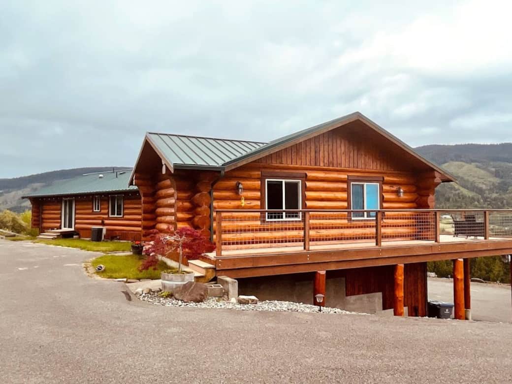 Inside you will find four bedrooms, two upstairs living rooms, and a spacious downstairs rec room with a smart TV and access to streaming apps. There will be plenty of space to spread out. Throughout the home you will enjoy the calming effect of the Canadian spruce log construction.